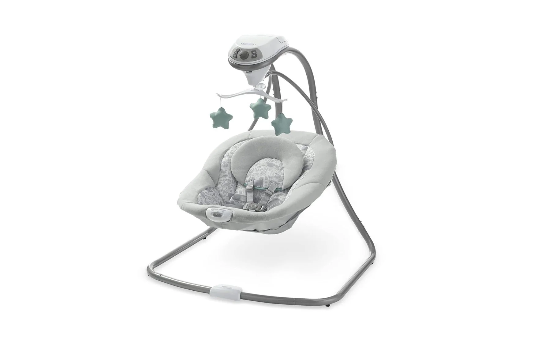 This 6-speed swing with gentle side-to-side swaying motion and 2 vibration settings soothes and comforts baby. Featuring a deep, plush seat and head support and small frame design to easily fit anywhere in the home.
